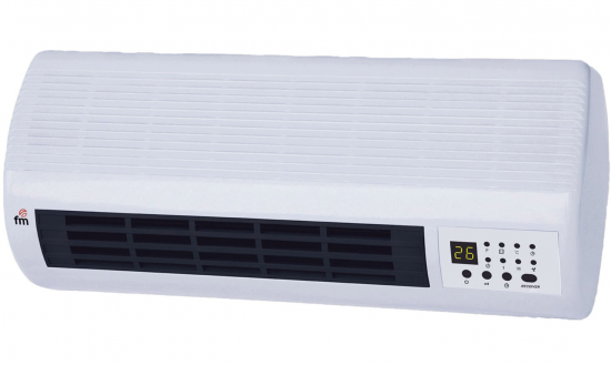 CALEFACTOR SPLIT FM TS2001 2000W 2000 W / 230 V / 50 Hz // Mando a distancia // temporizador // aire fresco (ventilación) / calefacción // 2 potencias: 1000 W / 2000 W // Termostato de seguridad // fijación mural // display digital // medidas: 45 x 18,5 x 11,5 cm.