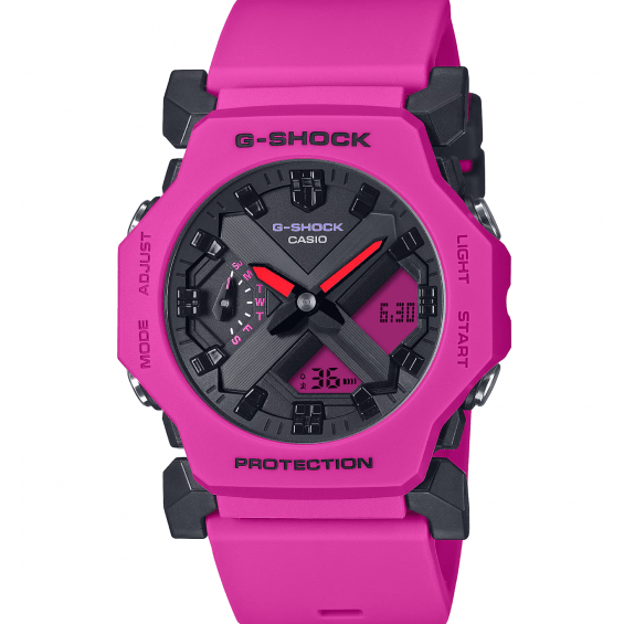 Descubre el Casio G-SHOCK GA-2300-4AER , un reloj analógico-digital que combina un diseño compacto y futurista con la resistencia característica de la línea G-SHOCK. Su caja de resina en vibrante color rosa y su estructura delgada de tan solo 11,6 mm de grosor lo convierten en el accesorio perfecto para quienes buscan estilo y funcionalidad en un solo dispositivo. Este modelo es ideal para el uso diario, actividades deportivas y aventuras extremas, ofreciendo durabilidad y precisión en cualquier entorno.