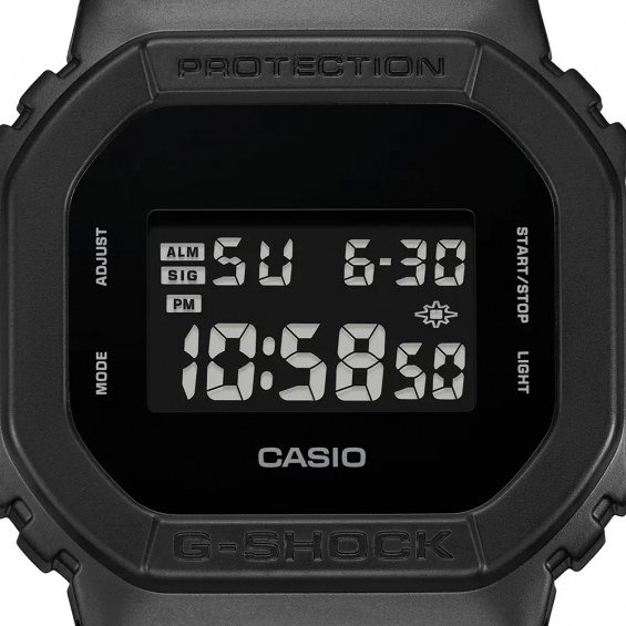 El DW-5600UBB-1ER destaca por su construcción robusta y duradera, con resistencia a golpes G-SHOCK y resistencia al agua hasta 20 bar (200 metros), ideal para natación, deportes acuáticos o uso diario en cualquier entorno. Su diseño monocromático en negro mate resalta su forma clásica, mientras que su iluminación LED blanca garantiza una excelente visibilidad incluso en la oscuridad.