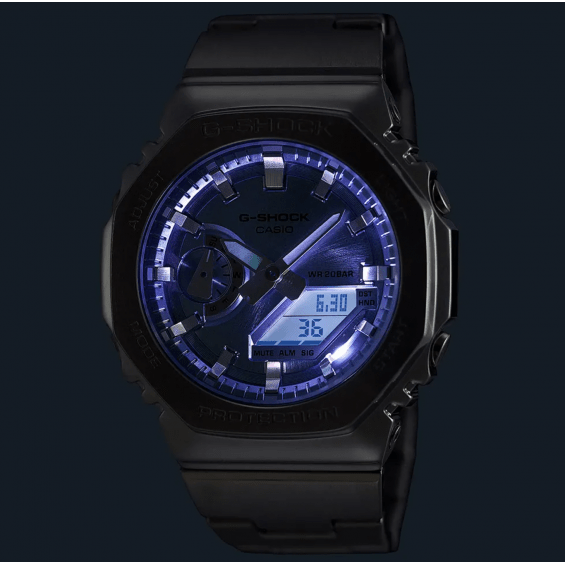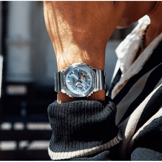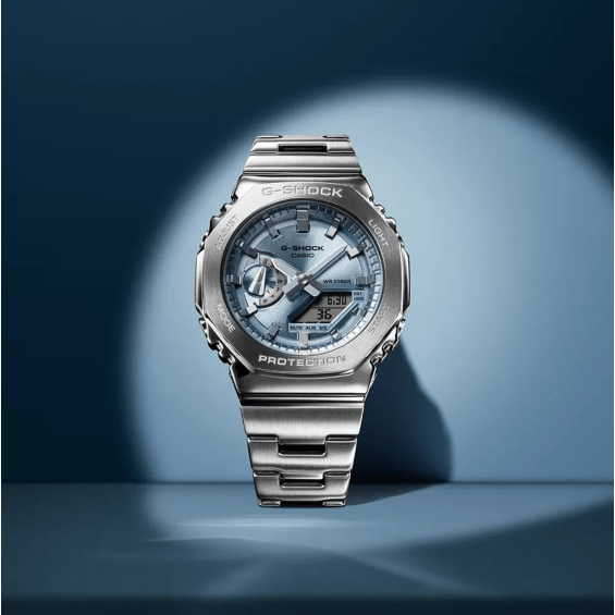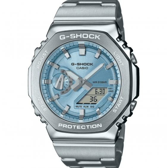 El Casio GM-2110D-2AER es un reloj analógico-digital de la familia G-SHOCK que destaca por su diseño resistente y moderno, ideal para los que buscan estilo, durabilidad y funciones avanzadas. Con su estructura de acero inoxidable en tono plata y esfera azul, este modelo ofrece una combinación impecable entre elegancia y robustez. Perfecto para el uso diario o para regalar, es uno de los G-SHOCK más buscados gracias a su estética y prestaciones.