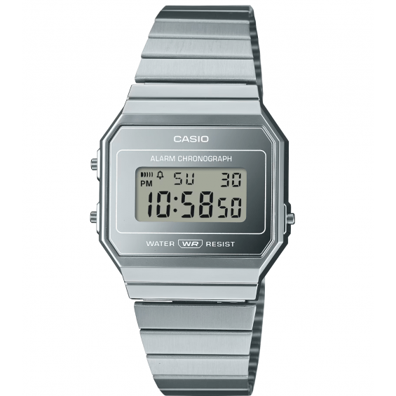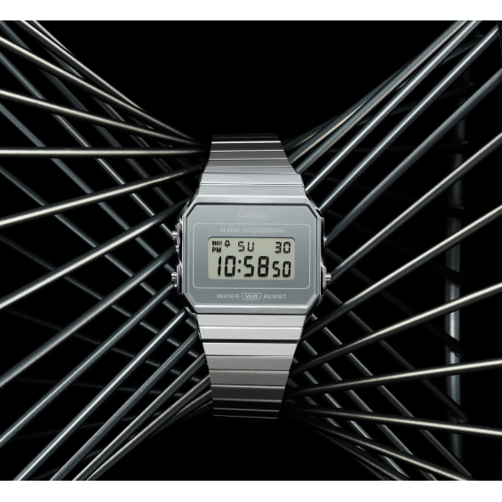 El Casio A700WEV-7AEF es un clásico reloj digital de la línea Casio Vintage que destaca por su diseño retro moderno, funcionalidad y gran resistencia . Con un acabado plateado elegante, caja cuadrada de resina cromada y una cómoda correa negra de resina , es perfecto para quienes buscan un reloj versátil, ligero y con estilo.