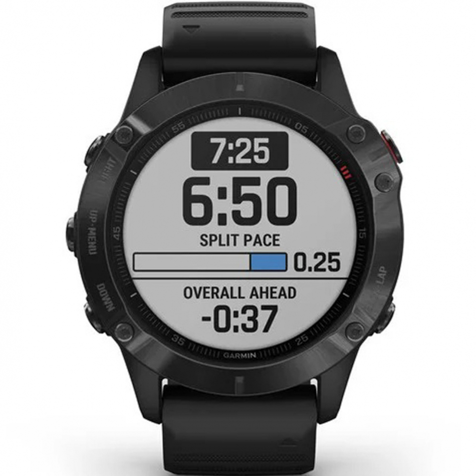 Comprar al mejor precio Reloj Smartwatch Garmin fēnix 6 Pro and Sapphire 010-02158-02, 47 mm, funciones Premium, edición estándar, negro . Un reloj multideporte GPS ultraresistente con mapas topo y de esquí precargados , música sin teléfono , PacePro™ , pagos Garmin Pay™ y autonomía hasta 14 días en modo reloj inteligente. Su diseño de 47 mm con lente de zafiro resistente a arañazos y pantalla MIP a color de 1,30" (260x260) visible a plena luz del sol supera los estándares de resistencia térmica y a golpes, para que puedas comprar un reloj preparado para todo. Con Wi-Fi, Bluetooth y ANT+ , integra métricas avanzadas de rendimiento , pulsioxímetro , Body Battery™ , ClimbPro y GNSS múltiple (GPS/GLONASS/Galileo) para entrenar y navegar con precisión en cualquier terreno.
