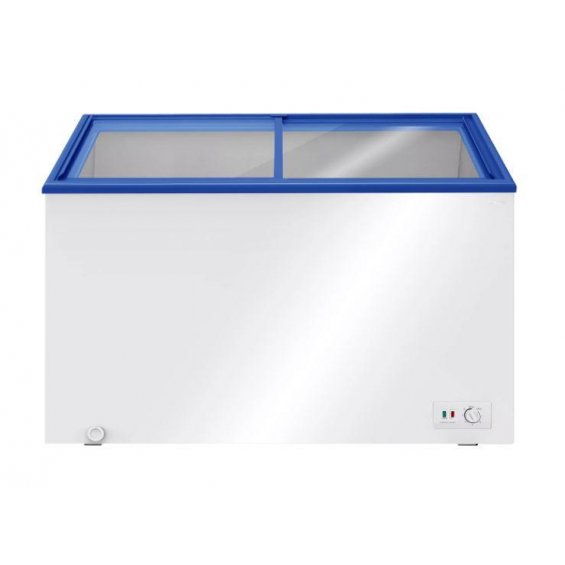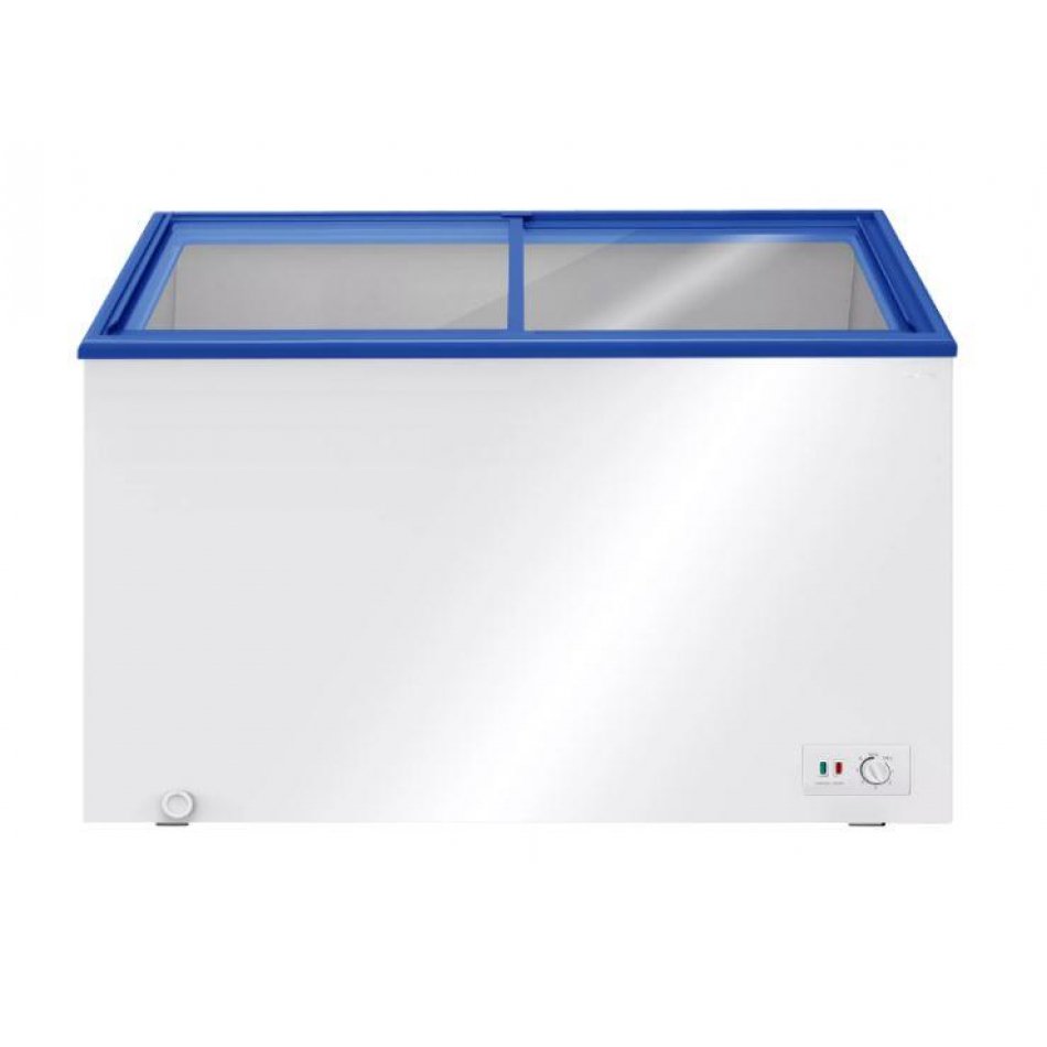 Gracias a su diseño horizontal con tapa de cristal y acabado en blanco , este congelador es fácilmente integrable en cualquier espacio profesional o doméstico. Incluye también un cesto auxiliar de almacenamiento para una organización más eficiente.
