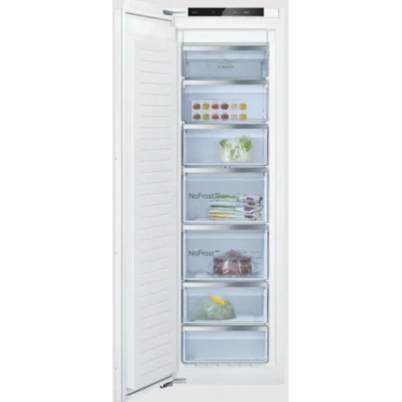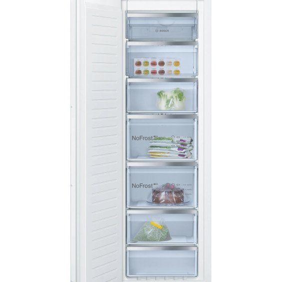Comprar congelador vertical integrable Bosch GIN81ACE0 , 177.2 x 55.8 cm, No Frost, cierre SoftClose con puerta fija, cajón bigBox, 35dB, clase E, al mejor precio , de oferta y con el mejor descuento del mercado en nuestra tienda online de electrodomésticos.