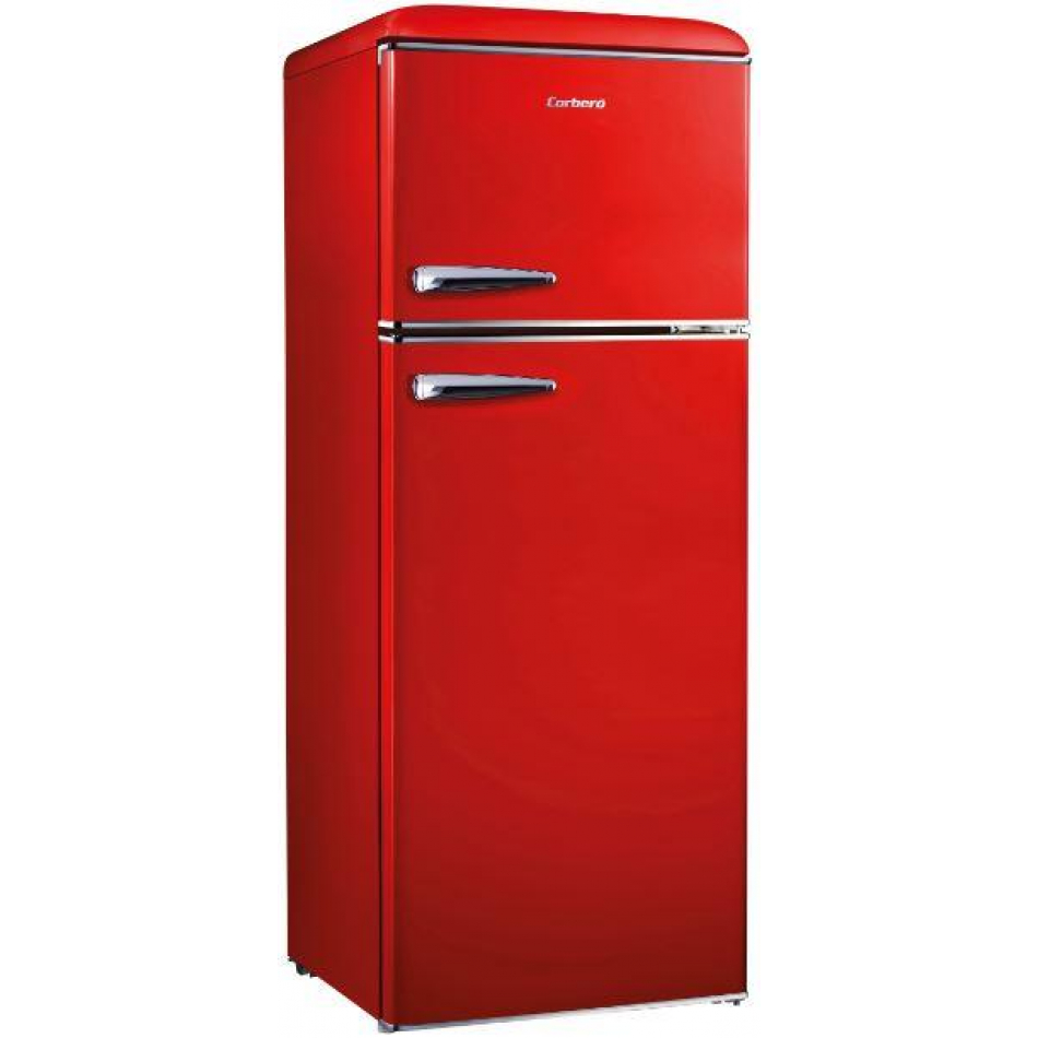 Comprar al mejor precio, frigorífico retro 2 puertas Corberó CF2PG148RR2 en color rojo. El frigorífico Corberó CF2PG148RR2 combina un elegante diseño retro con prestaciones prácticas para el día a día, convirtiéndose en una pieza protagonista en tu cocina. Su formato de libre instalación y sus medidas de 148,2 x 55,2 x 62,1 cm lo hacen ideal para espacios medianos que buscan estilo sin renunciar a funcionalidad.