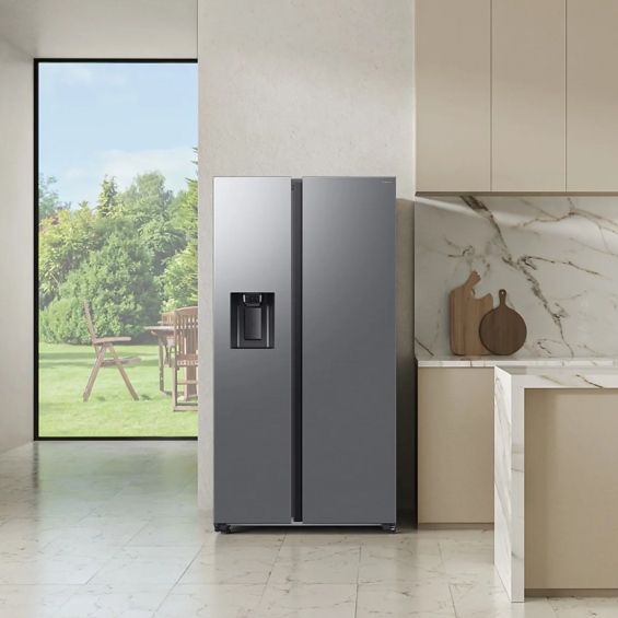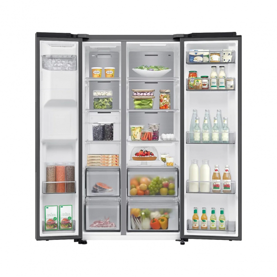 El modelo RS70F64KETEF también integra funciones Power Cool y Power Freeze para un enfriamiento y congelación rápida, Metal Cooling en la parte trasera del refrigerador para conservar mejor el frío y un sistema de control digital Simple UX con pantalla interior. Con WiFi integrado , podrás gestionarlo desde tu móvil a través de SmartThings y control por voz con Bixby .