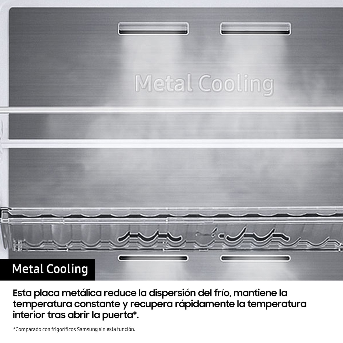 Las funciones Power Cool y Power Freeze permiten enfriar y congelar rápidamente alimentos o bebidas, mientras que su control interno Simple UX facilita el ajuste de la temperatura. Además, incorpora Metal Cooling en el frigorífico para conservar mejor el frío, incluso al abrir la puerta.