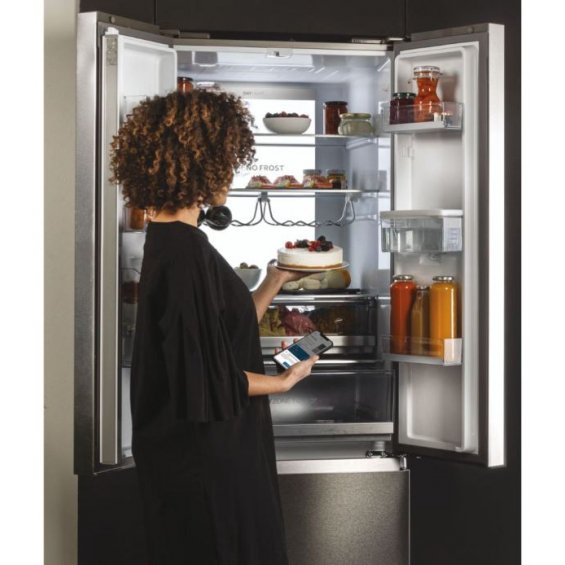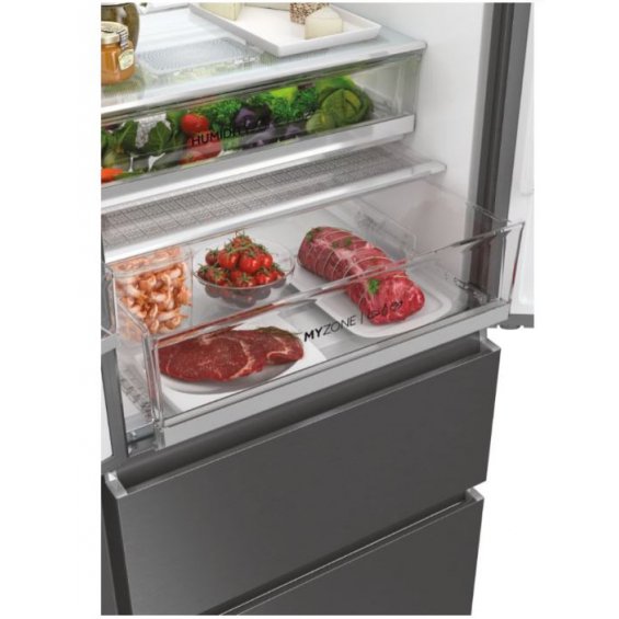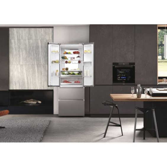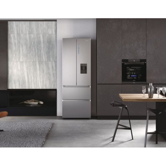 El Haier HFW7720EWMP FD 70 Series 7 con 4 puertas reúne la innovación de las tecnologías Fresher Tech® en un elegante acabado inox. Su diseño French Door MultiDoor optimiza el espacio y facilita el acceso al frigorífico y al congelador.