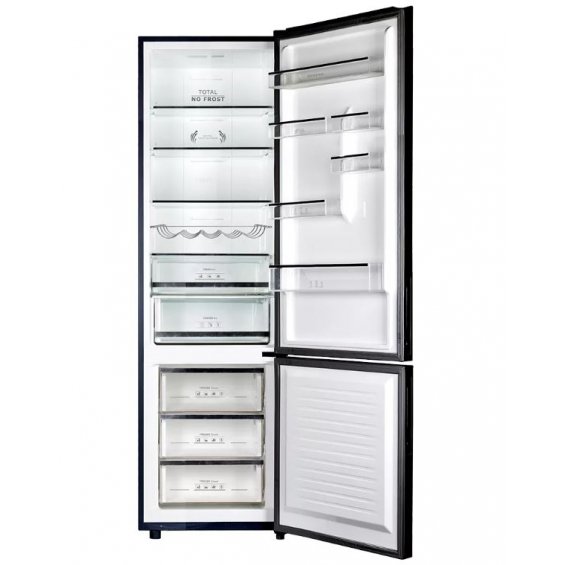 Comprar al mejor precio el frigorífico combi Infiniton FGC-228BG , un modelo Total No Frost de 356 litros con acabado Crystal Black que combina elegancia, innovación y gran capacidad de almacenamiento. Con sus 200 cm de altura y su diseño en cristal negro templado , este frigorífico redefine la estética moderna en la cocina, ofreciendo además ahorro energético, funcionamiento silencioso y tecnología avanzada .