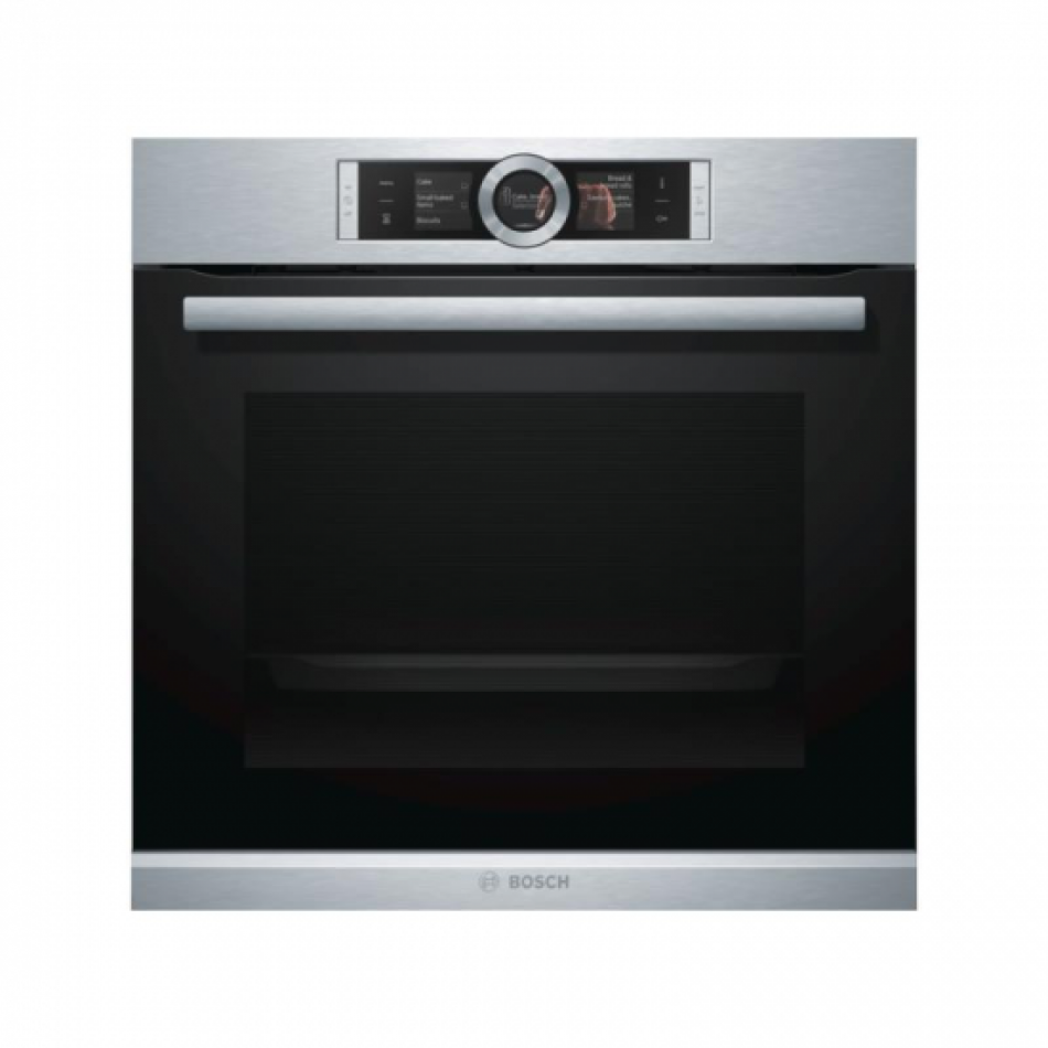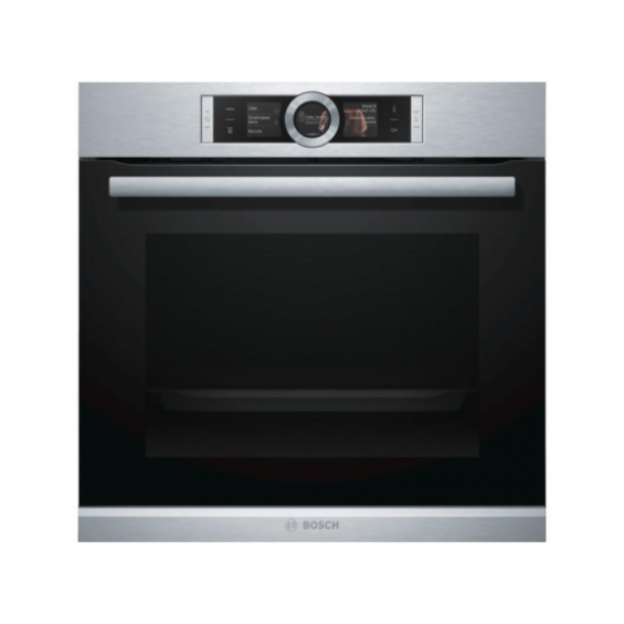 HBG6764S1.,Horno multifunción pirolítico.,Cristal negro con acero inoxidable.,EAN: 4242002808062Horno multifunción pirolítico.,Apertura abatible con SoftMove: apertura y cierre amortiguado de puerta..,Autolimpieza pirolítica en tres niveles: Eco, Normal y Plus.,Guías telescópicas pirolizables de extracción total en 1 nivel, con freno de máxima s,eguridad..,Pantalla con displays TFT táctiles, con textos e imágenes en color..,Asistente de cocinado Assist: recetas y recomendaciones de cocción..,Sensor de cocción PerfectBake: sensor avanzado para conseguir un horneado perfecto de, masas y repostería..,Termosonda PerfectRoast: con 3 sensores de medición de temperatura..,13 funciones de cocción: Sistema de calentamiento 4D Profesional, Modo Eco, Calor sup,erior e inferior, Calor superior e inferior Eco, Grill con aire caliente, Grill de am,plia superficie, Grill, Función pizza, Calor inferior, Descongelar, Cocción suave a b,aja temperatura, Mantener caliente, Precalentar vajilla.,Función Sprint de precalentamiento rápido..,Reloj electrónico programable de inicio y paro de cocción..,Motor EcoSilence Drive: ventilador sin escobillas, súper silencioso y muy eficiente..,Iluminación halógena en el interior del horno..,Accesorios:.,Bandeja profunda, Bandeja plana, Parrilla profesional.,Libro de cocina gratuito (bajo pedido).,Clasificación eficiencia energética (según EU Nr. 65/2014):.,Índice de eficiencia energética: 81,2.,Clase de eficiencia energética: A+.,Consumo energético por ciclo en modo convencional: 0,87 kWh.,Consumo energético por ciclo en modo multifunción: 0,69 kWh.,Número de cavidades: 1.,Fuente de energía: eléctrica.,Volumen de la cavidad: 71 litros