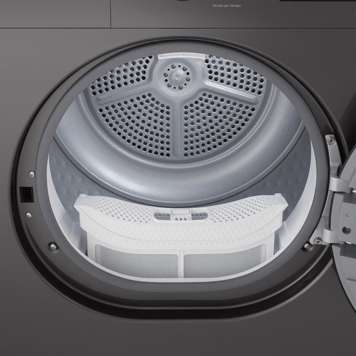 La tecnología de secado por bomba de calor permite reducir el consumo energético hasta 119 kWh/100 ciclos , optimizando cada secado y cuidando tus tejidos más delicados. Gracias a sus 8 programas específicos como Algodón, Delicado, Mixtos, Lana, Ropa deportiva, Eco, Aire caliente y Secado al aire (aire frío) , podrás adaptar el ciclo a cada tipo de prenda con total precisión. Una opción perfecta si buscas comprar una secadora eficiente, versátil y con la mejor relación calidad-precio .