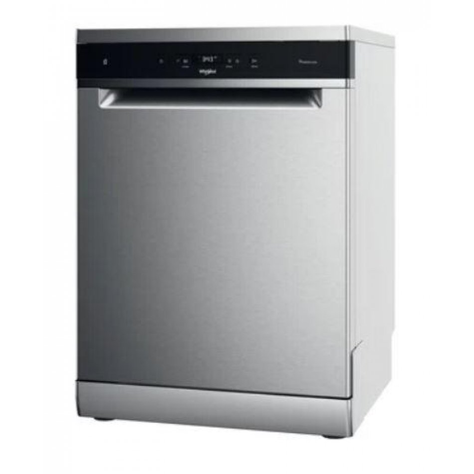 Lavavajillas Whirlpool WFC3C34PX inox D Capacidad 14 cubiertos // Display Electrónico // Tecnogíloa 6º SENTIDO Power Clean // 8 programas de lavado // Inicio Diferido 24 h // Aquastop // Alto x Ancho x Largo: 850 x 600 x 590 mm
