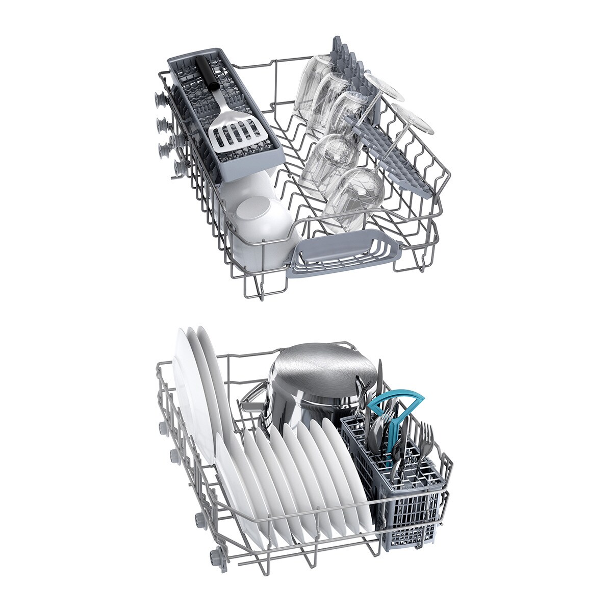 Este modelo integra Home Connect , permitiendo el control remoto y el acceso a funciones adicionales vía app como Extra higiene , Programa rápido 45 ºC o Silencio . Además, cuenta con sistema de secado por intercambiador de calor para un secado eficiente y cuidado de la vajilla.