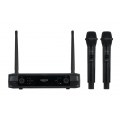 | CARACTERÍSTICAS | Micrófono inalámbrico doble de mano con cápsula dinámica unidireccional. Receptor compacto con indicador de señal de radio frecuencia y señal de audio. Canales de transmisión de frecuencia fija. Distancia de transmisión mayor de 30 m. Fácil uso. Máximo 8 micrófonos/receptores funcionando simultáneamente en diferentes canales. |