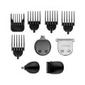 Este set de arreglo incluye cuatro cabezales intercambiables y lavables : un cabezal rotativo, uno de precisión para contornos y patillas, un cabezal mini afeitado y el cabezal principal con cuchilla de titanio , lo que garantiza mayor durabilidad y resistencia . Además, ofrece hasta 13 longitudes de corte con ajustes de 3 a 10 mm mediante peine regulable, y 4 peines fijos de 12, 15, 18 y 21 mm.