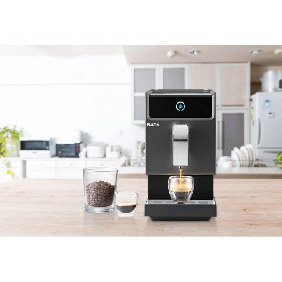 Comprar al mejor precio la Cafetera Superautomática Flama 1293FL y disfruta de un café profesional en casa con 19 bares de presión y 1.2 litros de capacidad.