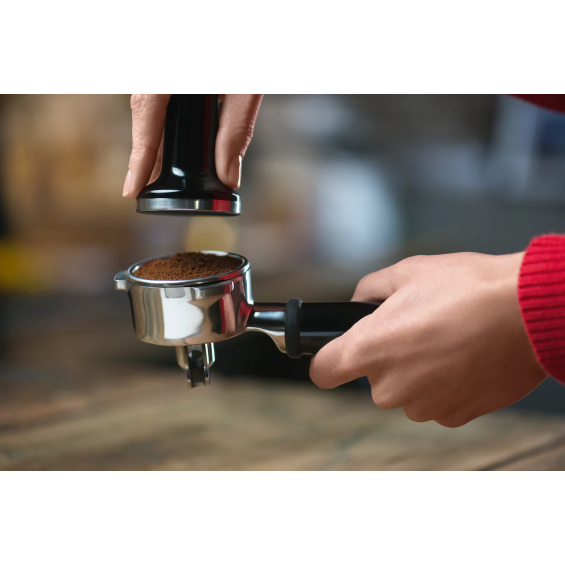 Su molinillo integrado de muelas cónicas de precisión con 30 ajustes de molienda muele el café al instante y en la cantidad exacta, asegurando el máximo aroma y sabor en cada espresso. El apisonado manual y el prensador extraíble permiten un control total del proceso, acercando la experiencia profesional directamente a tu cocina.