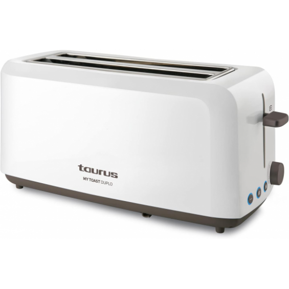 Comprar el Tostador Taurus MYTOAST DUPLO es la mejor opción para disfrutar de un desayuno rápido y delicioso. Con sus 2 ranuras extra largas de 262mm y extra anchas de 32mm, podrás tostar pan de mayor tamaño sin problemas. Además, cuenta con 6 niveles de tostado que te permiten ajustar la intensidad según tu gusto. Este tostador también ofrece 3 funciones muy útiles: descongelar, recalentar y cancelar. En nuestra tienda online , te garantizamos el mejor precio y un servicio excepcional tanto en la venta como en la postventa.