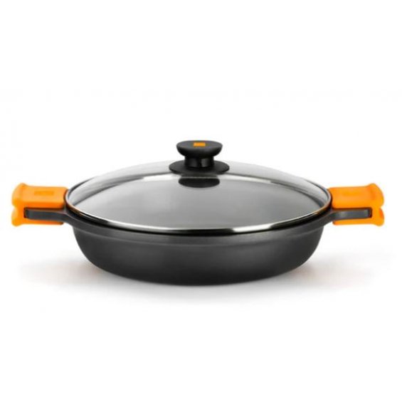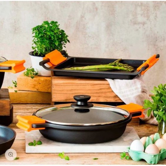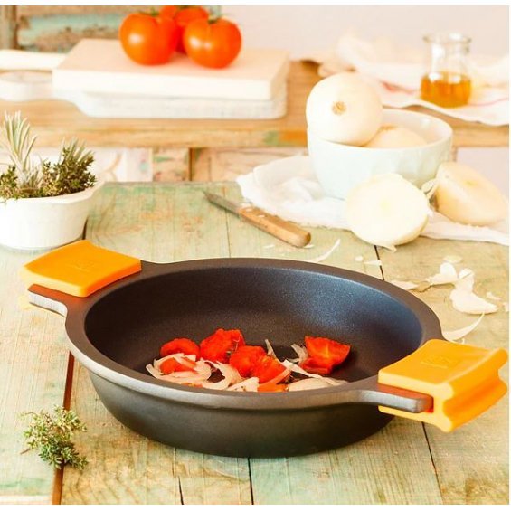 Incluye tapa de cristal para controlar la cocción y dos asas de silicona naranja para una manipulación cómoda y segura. Su versatilidad te permitirá preparar desde risottos, guisos, carnes y pescados al horno hasta recetas dulces como bizcochos o clafoutis.