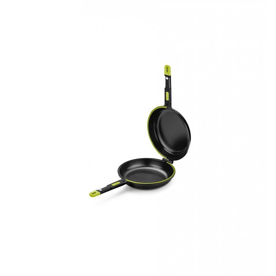 Comprar al mejor precio: la sartén BRA Doble Foodie de 20 cm es la solución perfecta para preparar tortillas sin esfuerzo ni derrames. Fabricada en aluminio fundido de 5,5 mm , cuenta con un recubrimiento tricapa Teflon™ Innovations libre de PFOA y fondo difusor Full Induction que garantiza una distribución homogénea del calor en todo tipo de cocinas, incluida la inducción.