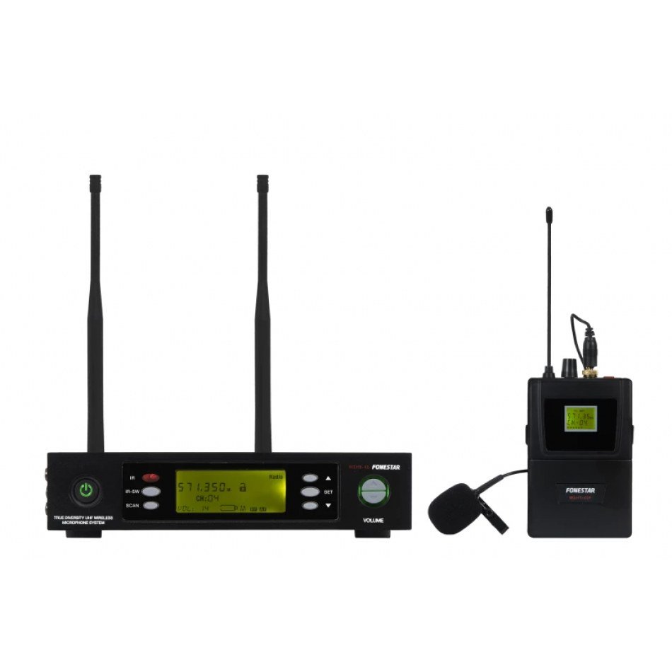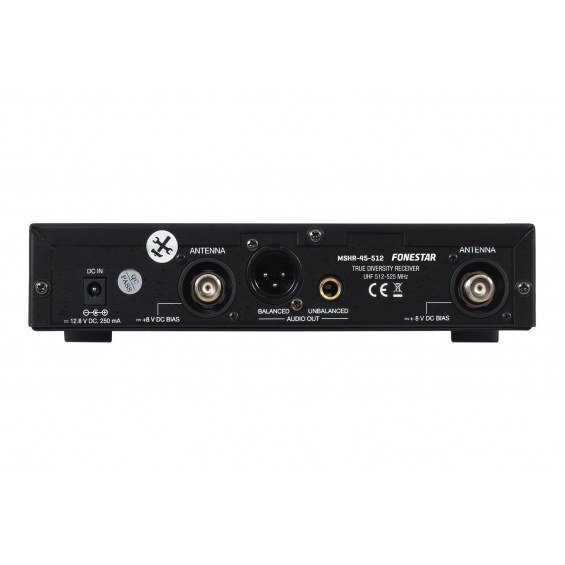 | CARACTERÍSTICAS | Receptor true diversity con micrófono de solapa con cápsula de condensador electret unidireccional y transmisor inalámbrico de petaca. Función auto scan. Transmisión del canal al micrófono por IR. Antenas desmontables. Con varios receptores, máximo 4 - 5 micrófonos al mismo tiempo. Para más micrófonos usar otras bandas de frecuencia. |