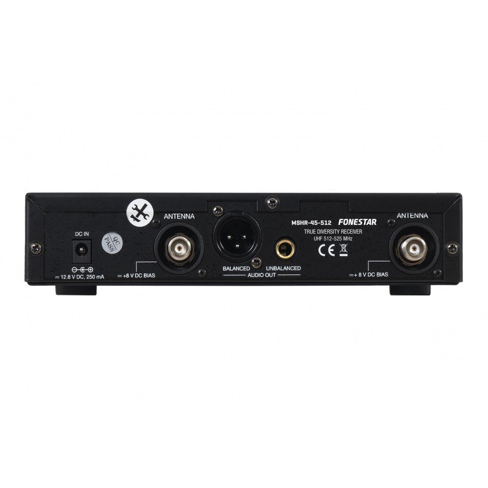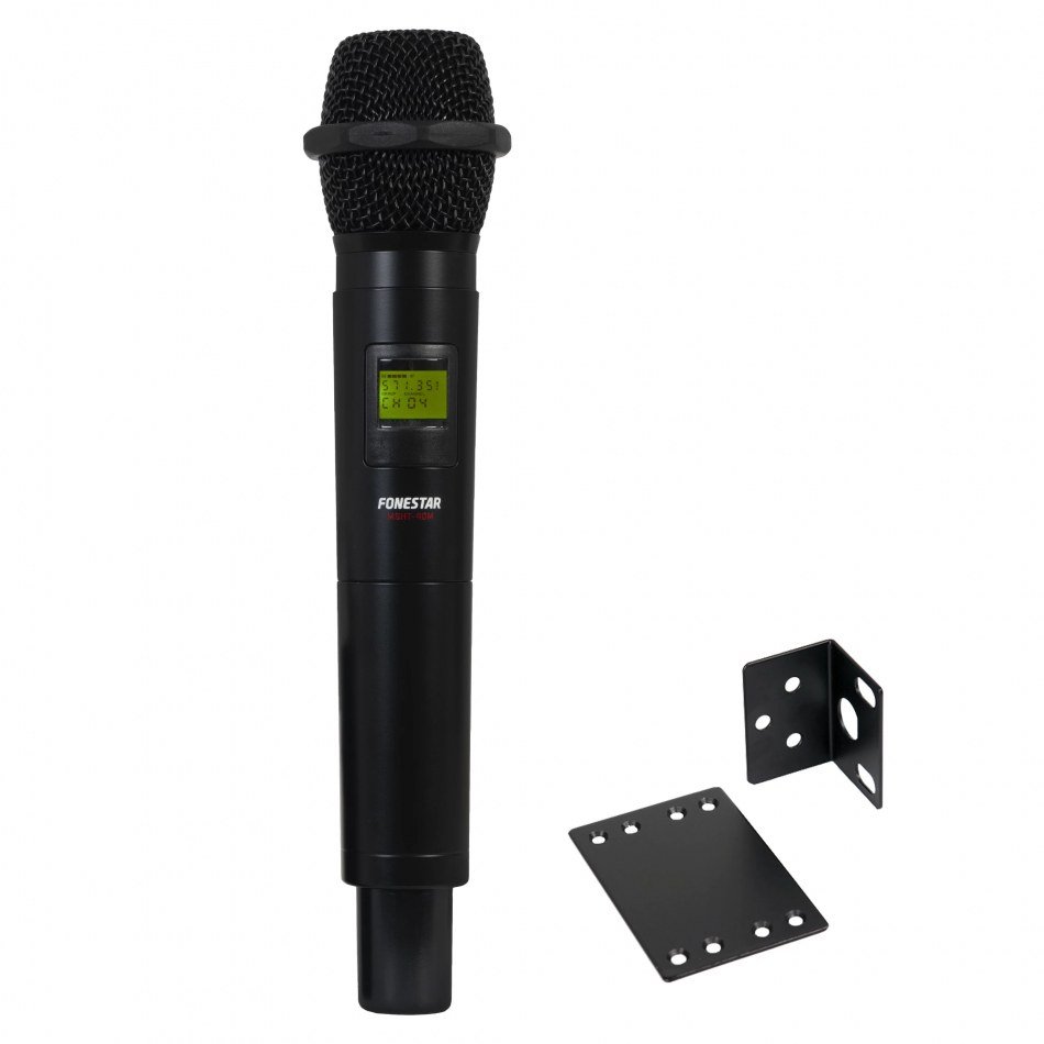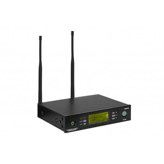 | CARACTERÍSTICAS | Receptor true diversity con micrófono inalámbrico de mano con cápsula de condensador electret unidireccional. Función auto scan. Transmisión del canal al micrófono por IR. Antenas desmontables. Con varios receptores, máximo 4 - 5 micrófonos al mismo tiempo. Para más micrófonos usar otras bandas de frecuencia. |