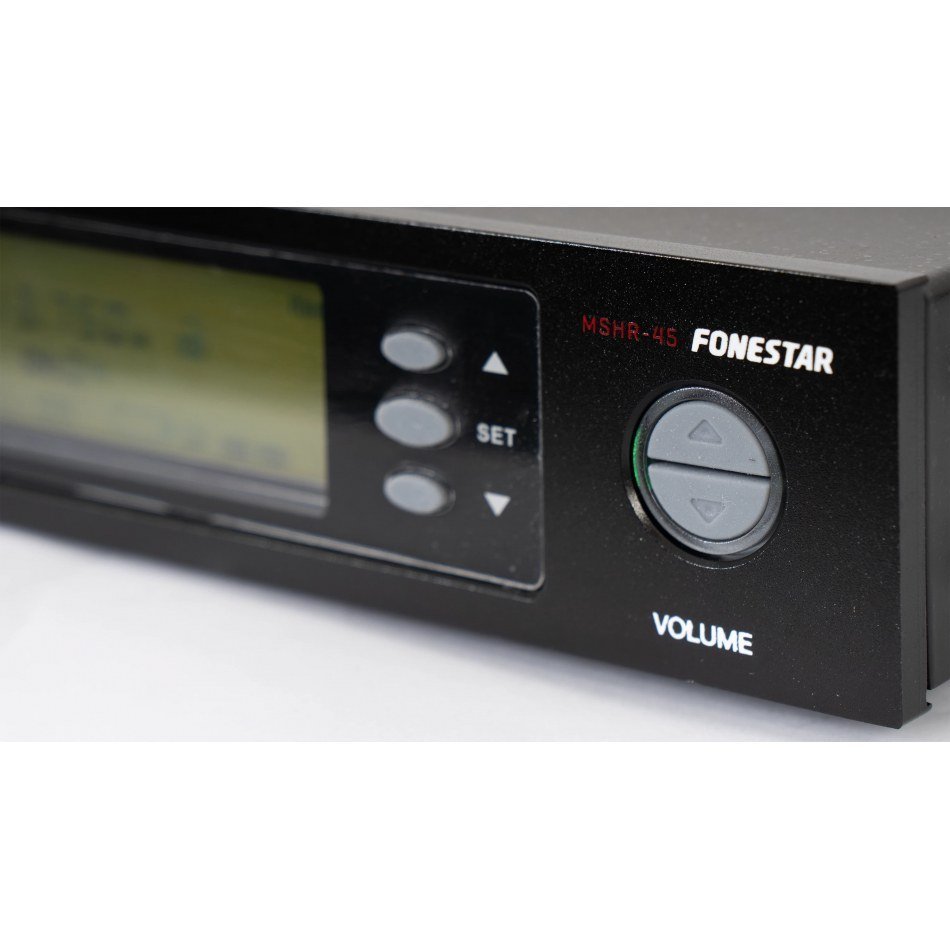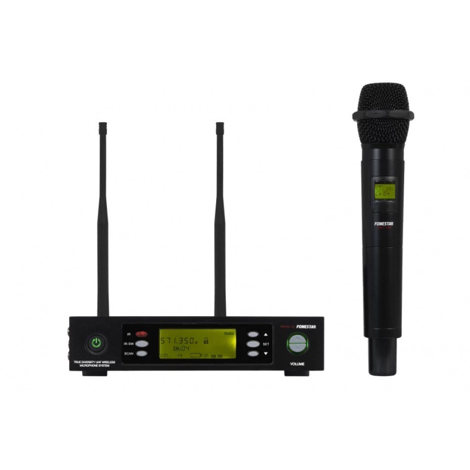 | CARACTERÍSTICAS | Receptor true diversity con micrófono inalámbrico de mano con cápsula de condensador electret unidireccional. Función auto scan. Transmisión del canal al micrófono por IR. Antenas desmontables. Con varios receptores, máximo 4 - 5 micrófonos al mismo tiempo. Para más micrófonos usar otras bandas de frecuencia. |