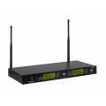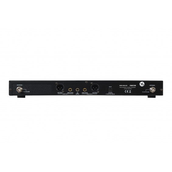 | CARACTERÍSTICAS | Receptor doble true diversity con 2 micrófonos inalámbricos de mano con cápsula de condensador electret unidireccional. Función auto scan. Transmisión del canal al micrófono por IR. Antenas desmontables. Con varios receptores, máximo 4 - 5 micrófonos al mismo tiempo. Para más micrófonos usar otras bandas de frecuencia. |