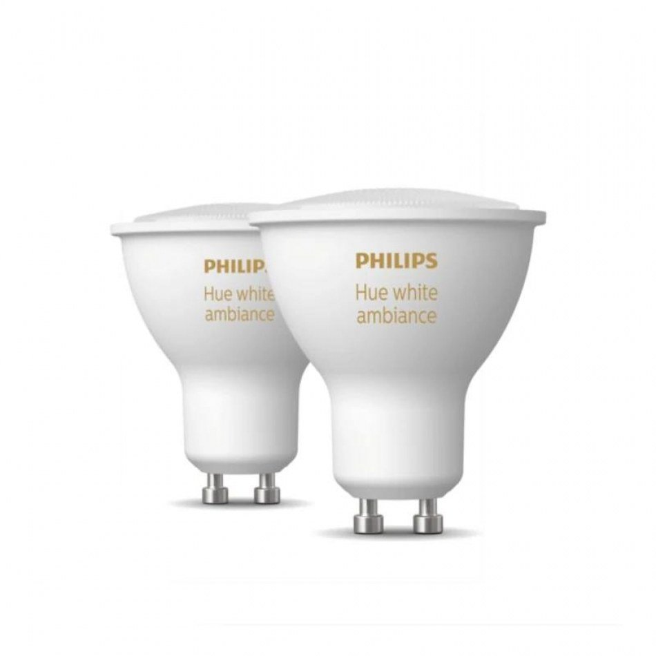 | Características | - Pack de 2 bombillas - Regulable con aplicación Hue e interruptor - Tecnología LED - Luminosidad: 350 - Temperatura del color: 2200K-6500K - Diámetro: 50 mm - Casquillo: GU10 - Altura: 54 mm - Tensión de entrada: 220V-240V - Duración: 15.000 hora(s) - Emisión de luz: Luz blanca de cálida a fría - Energía de funcionamiento máxima: 5,2 W - Energía en espera máxima: 0.5 W - Número de ciclos de apagado y encendido: 50.000 - Factor de potencia: 0.5 - Vida útil especificada: 15.000 hora(s) - Actualizable por software: cuando se conecta al puente Hue - Encendido: Emisión de luz al 100% al instante - Potencia: 5 W - Regulable dinámicamente - Protocolo de comunicaciones: Bluetooth y Zigbee - Actualizable por software: Cuando se conecta a Bluetooth App o Hue Bridge Compatibilidad - Compatible con la característica Efectos - Compatible con HomeKit - Aplicación Philips Hue: IOS 14 y superior, Android 10.0 y superior - Asistentes de voz: Amazon Alexa Apple HomeKit (mediante Hue Bridge) Google Assistant Microsoft Cortana (mediante Hue Bridge) |