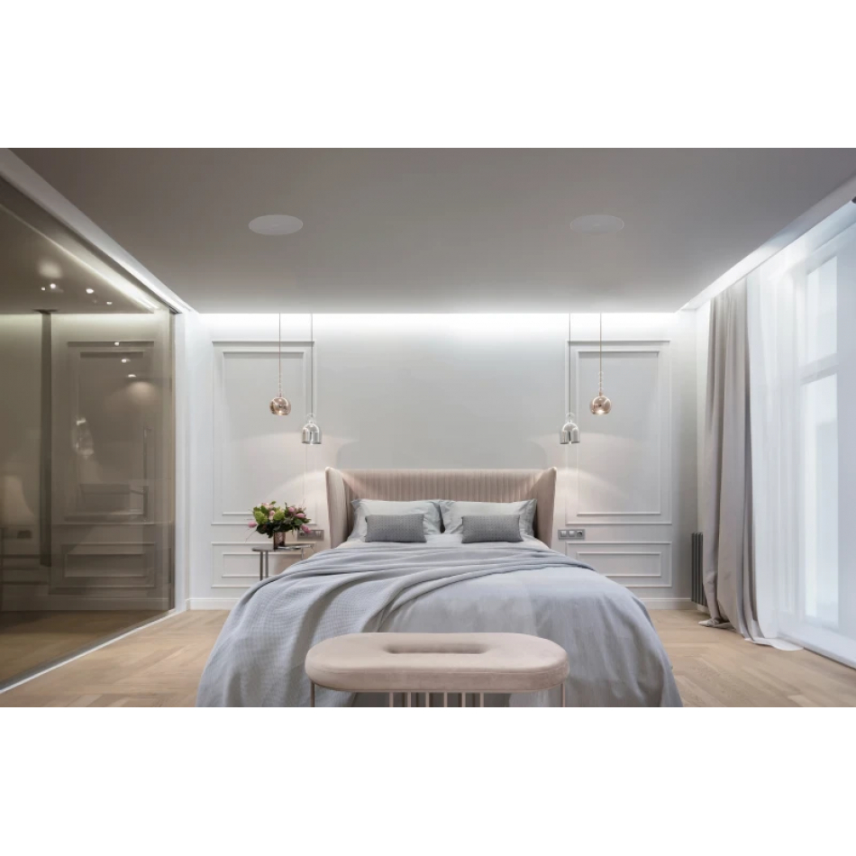 | MEDIDAS | Altavoz total: 249 mm Ø x 95 mm altura Perfil de rejilla: 5 mm Altura de encastre: 90 mm Orificio de instalación: 219 mm Ø Máximo grosor de techo: 30 mm |