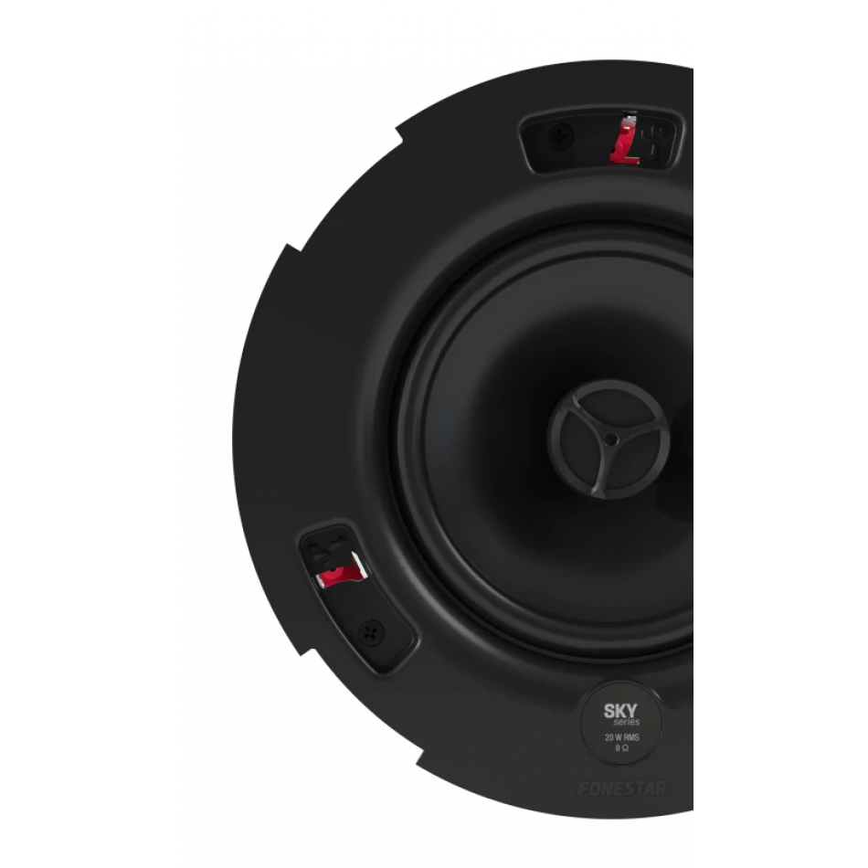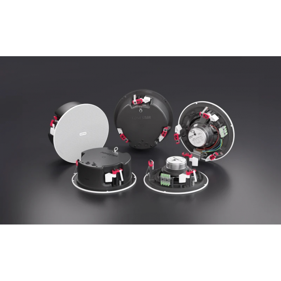 | CARACTERÍSTICAS | Altavoz de techo de baja impedancia. Cubierta posterior tipo domo de protección. Rejilla sin marco y perfil bajo, construida en aluminio resistente a la oxidación. Desmontable, bloqueable mediante giro. Se puede quitar el logo y pintar. Terminales de conexión rápida y gran conductividad. Caja de conexión en la cubierta posterior con orificio de entrada y salida. Sistema anticaída para ayuda en la instalación. Gancho para cable de seguridad. Soportes de sujeción al techo estables, mediante tornillo sin fin. Instalación en techos con espacio reducido. Protección contra el polvo y el agua. |
