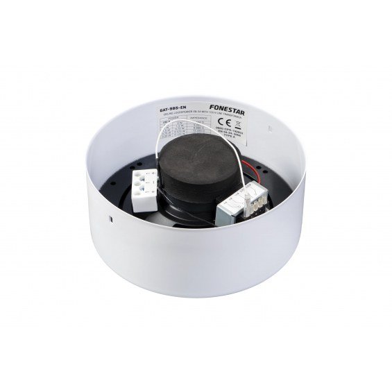 | CARACTERÍSTICAS | Altavoz de techo superficie EN 54 con transformador de línea 100 V, rejilla redonda y caja antifuego. |