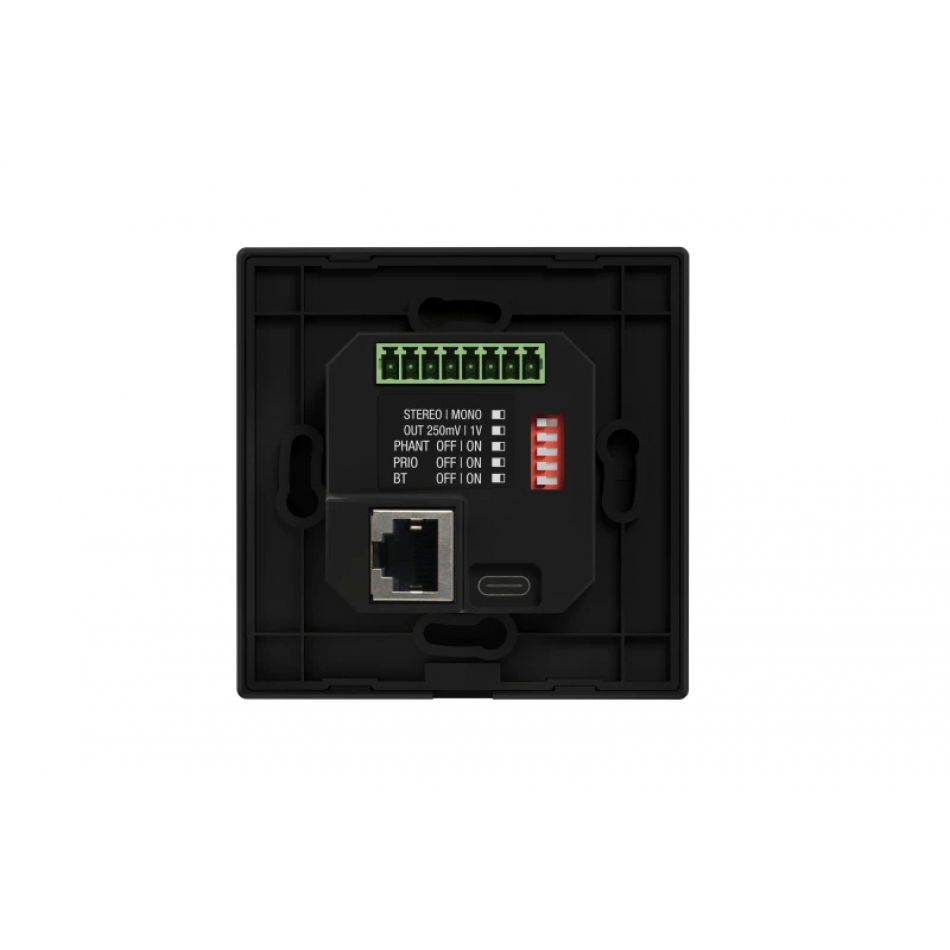 El WALLMIX-BK es un mezclador de audio para pared con reproductor Bluetooth integrado, diseñado para ofrecer una solución compacta, versátil y estética en instalaciones profesionales. Compatible con cajas estándar cuadradas y redondas, permite su integración discreta en paredes, facilitando el acceso a entradas de micrófono, AUX y reproducción inalámbrica mediante Bluetooth 5.3 con una distancia de hasta 10 metros.