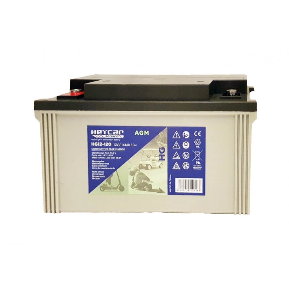 | CARACTERÍSTICAS | Batería de plomo y ácido 12 V 120 Ah. AGM VRLA. Alta descarga. Larga vida de servicio. Libre de mantenimiento. Baja auto-descarga. |