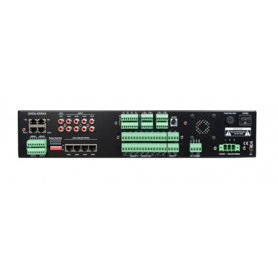 | CARACTERÍSTICAS | Unidad de control para sistema de megafonía y alarma por voz EN 54. 8 zonas de altavoces. Ampliable a 2.000 zonas máximo con ZS-2000M. Monitorizado de las 8 líneas de altavoces A+B. Monitorizado de los micrófonos ZS-200M. Conmutación de línea 100 V con dos modos de funcionamiento: conexión para 1 amplificador por fuente de audio o conexión para 1 amplificador por cada 2 zonas, distribuidos a 8 zonas de salida para altavoces. Reproductor de mensajes con capacidad de almacenamiento de 512 MB. Registro y almacenamiento de errores. Certificado con la norma EN 54-16. 8 entradas y 8 salidas por cierre de contactos. |