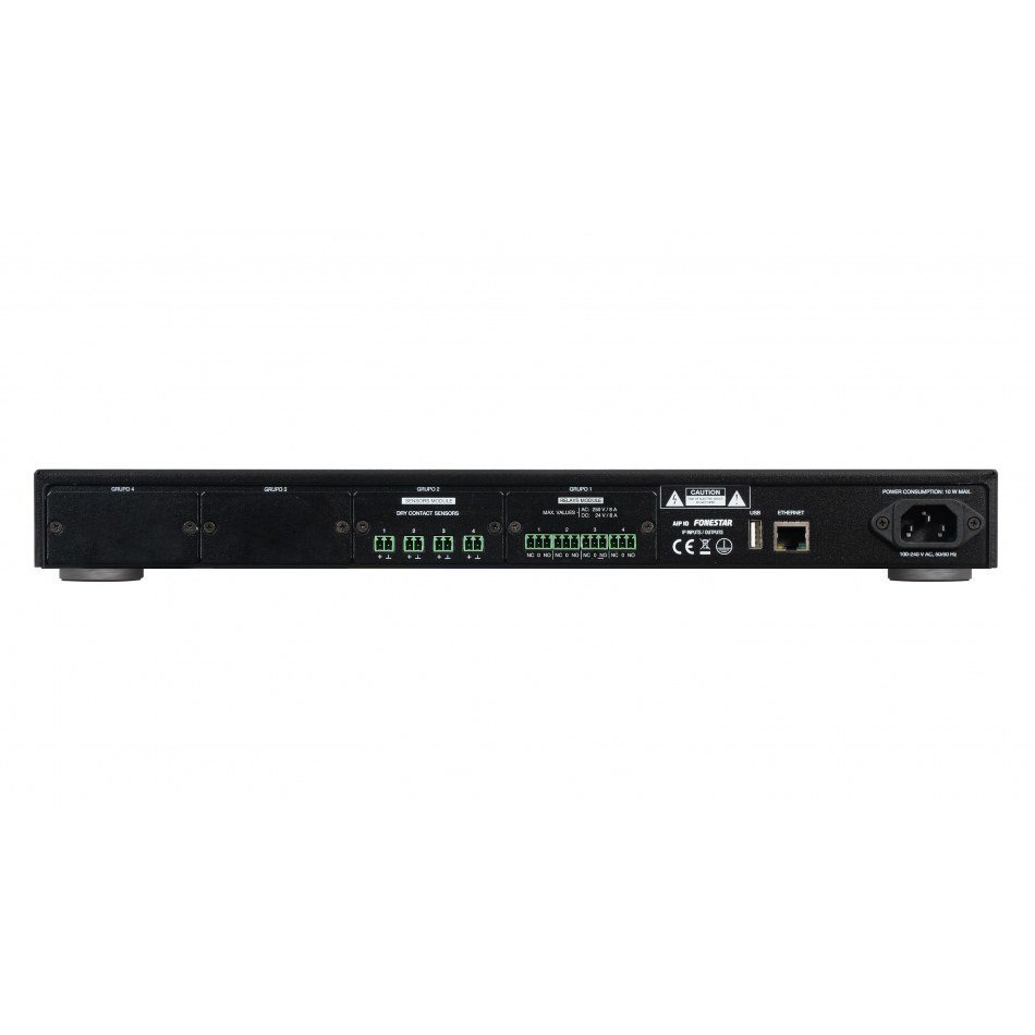 | CARACTERÍSTICAS | Dispositivo de 4 entradas aisladas y 4 salidas de propósito general para sistema de audio IP. Actualización remota mediante software para PC o de manera local a través de USB. |