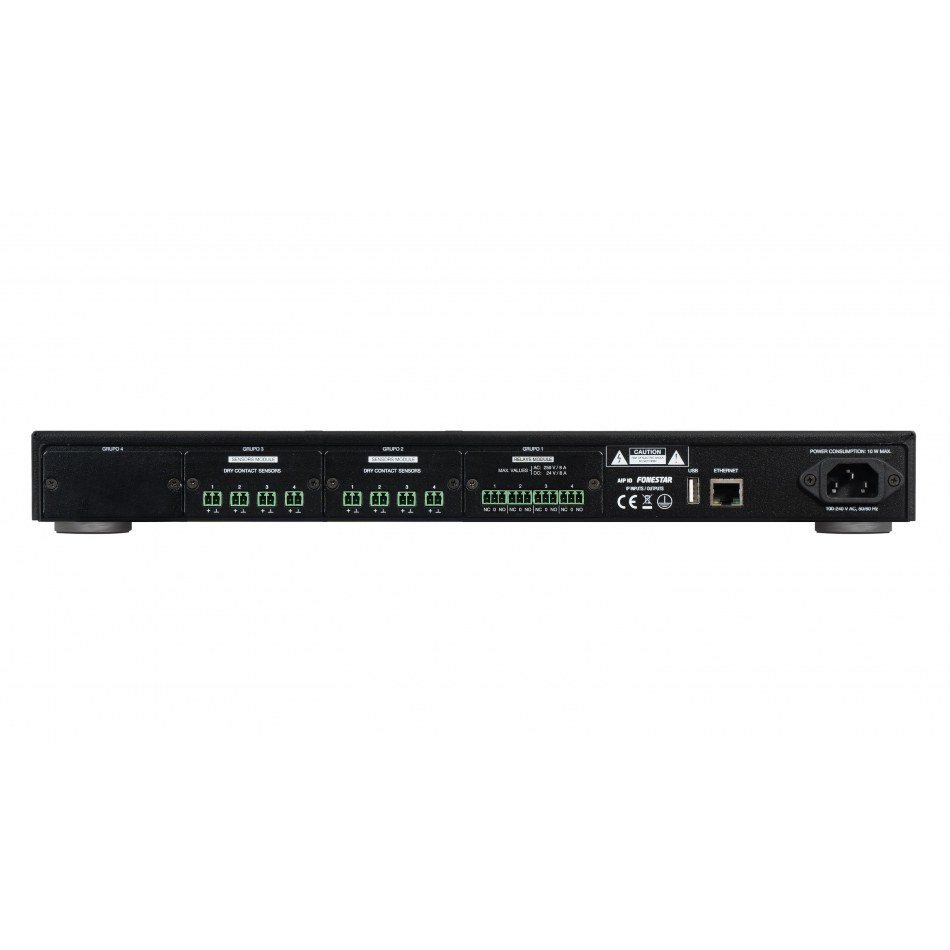 | CARACTERÍSTICAS | Dispositivo de 8 entradas aisladas y 4 salidas de propósito general para sistema de audio IP. Actualización remota mediante software para PC o de manera local a través de USB. |