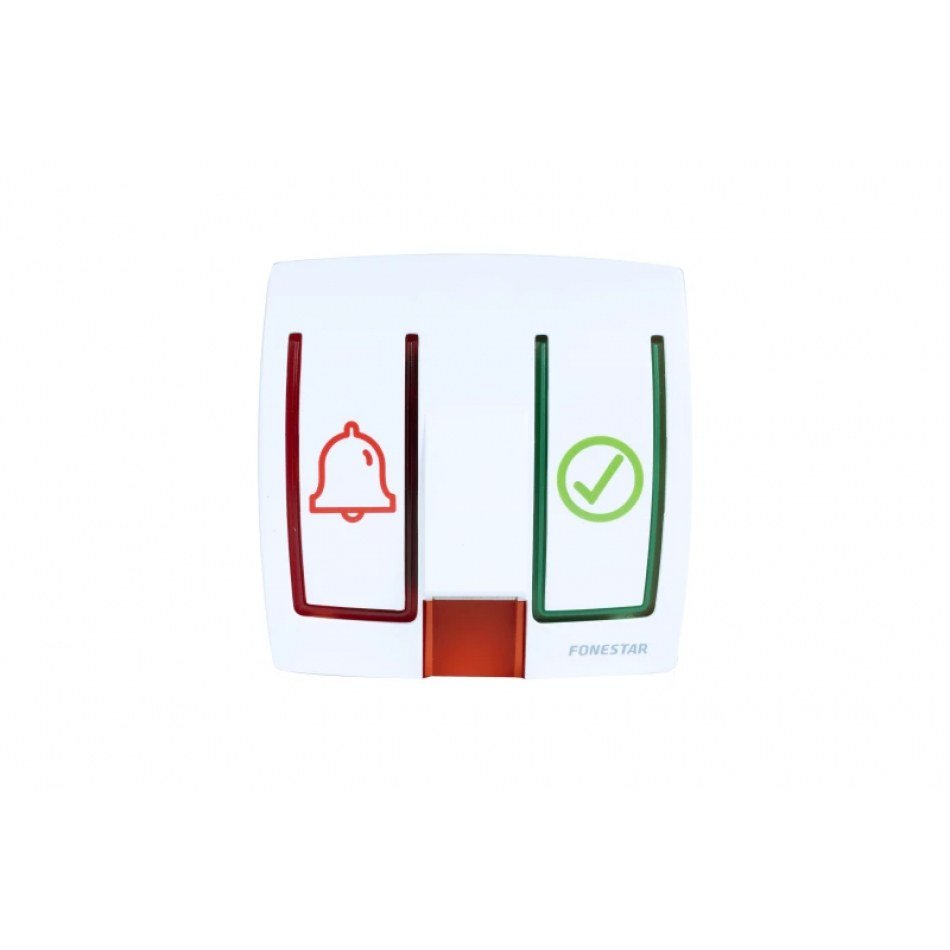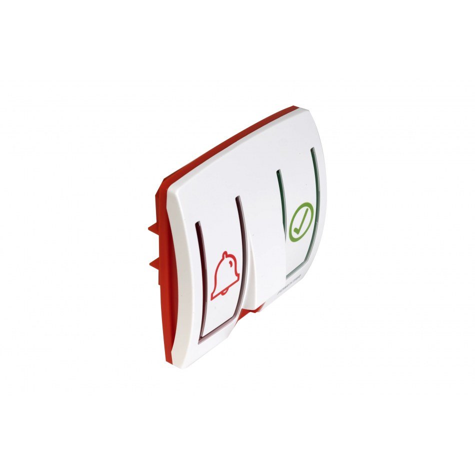 | CARACTERÍSTICAS | Pulsador de pared para llamada al personal sanitario. Conexión de mando pulsador tipo pera. Permite al paciente dar un aviso mediante el botón de llamada o el pulsador tipo pera. Botón de cancelación para suprimir la llamada. Botones retroiluminados. Alimentación PoE. Instalación en superficie o empotrado. Para caja estándar universal cuadrada. Distancia entre tornillos: 60 mm. |