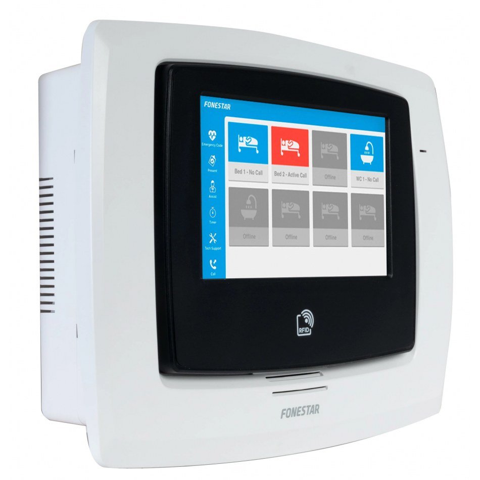 | CARACTERÍSTICAS | Central de habitación VoIP con pantalla táctil 5", intercomunicador y lector de tarjetas RFID. Gestión de los avisos de los pacientes por el personal sanitario. Creación de códigos de emergencia: código azul, blanco, etc. Solicitud de ayuda al resto del personal sanitario. Configuración de los elementos de llamada de la habitación. Conexión de los elementos de habitación, hasta 8 unidades de llamada y 1 unidad de control de luces ASSIST-IP1200L. Conexión a red de datos TCP/IP. Comunicación full-duplex con protocolo SIP. Alimentación PoE. Montaje en superficie o empotrado. |