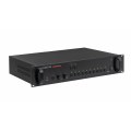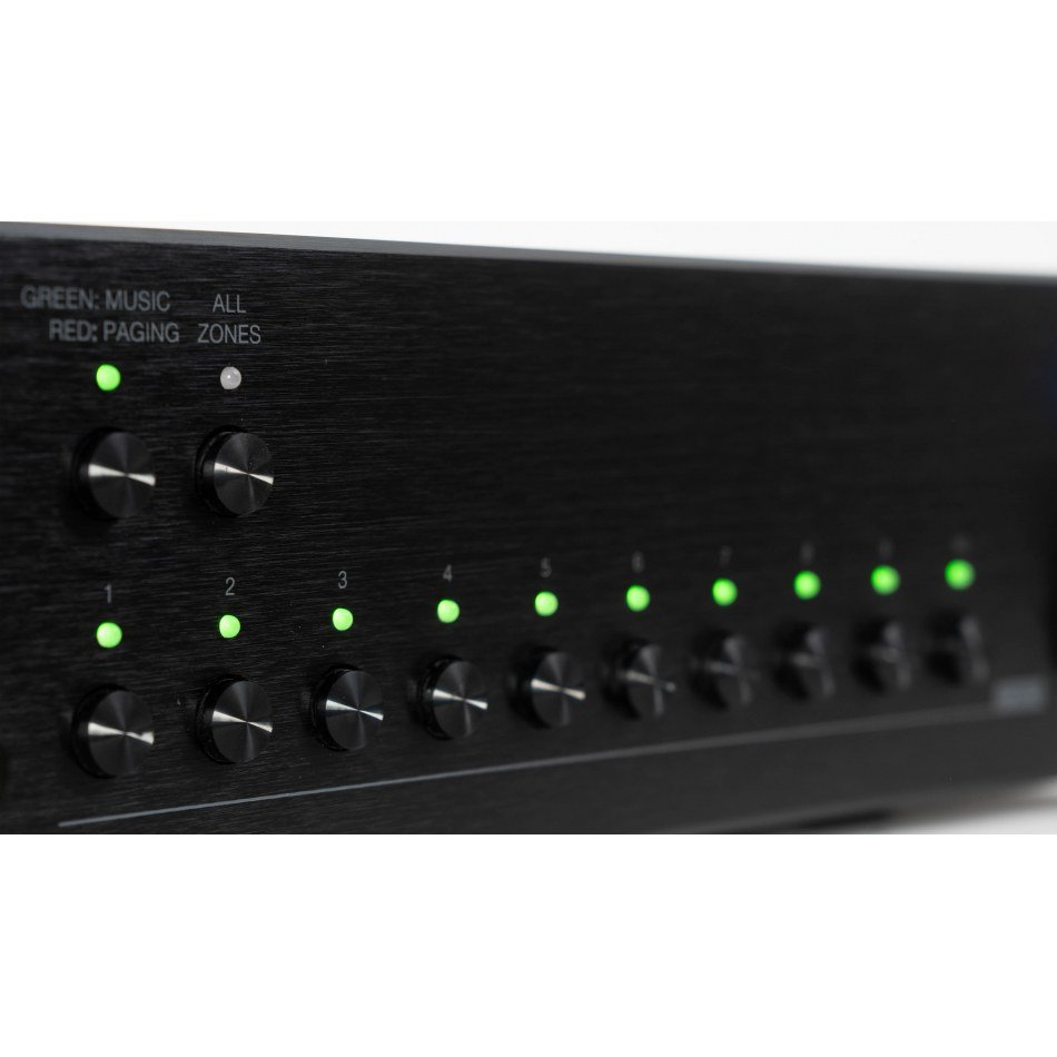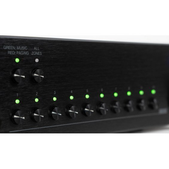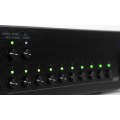 | ENTRADAS | 2 micros desbalanceados, jack 6'3 mm 600 Ω 5 mV 2 líneas desbalanceadas, euroblock 10.000 Ω 775 mV 2 activación de alarma por cierre de contactos, euroblock 10 línea 100 V para amplificador de avisos, máximo 500 W por zona, euroblock 10 línea 100 V para amplificador de música ambiente, máximo 500 W por zona, euroblock 1 micro con selector de zonas, RJ45 |