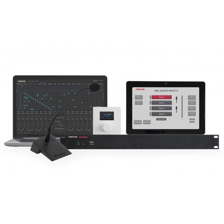 | CARACTERÍSTICAS | Matriz de audio con DSP, arquitectura ADI SHARC 21489 8 entradas analógicas Micrófono / línea con Phantom de 48V seleccionable. 8 entradas digitales DANTE. 8 salidas analógicas. 8 salidas digitales DANTE. Canal de entrada y salida de tarjeta de sonido USB. Algoritmos: Cancelación de Eco AEC, Cancelación de Realimentación AFC, Supresión de Ruido ANS, Control Automático de Ganancia AGC. Procesado de la señal con 5 módulos por canal de entrada entre expansor, compresor, puerta de ruido, control automático de ganancia AGC, prioridad, filtro paramétrico, filtro gráfico, prioridad, cancelación de realimentación acústica AFC y retardo. Y 4 módulos por cada canal de salida entre red de cruce, filtro paramétrico, filtro gráfico, retardo y limitador. Funciones de unión de dos canales en estéreo, Auto mezclado, Cancelación de Eco AEC, Supresión de Ruido ANS, volumen de asignación en la matriz, 8 GPIO, 16 escenas, control de seguimiento de cámaras PTZ. Conexión por ethernet y puerto de control RS-232, RS-485. Protocolo UDP, RS-232 y RS-485. Software de configuración e interfaz de usuario modular con App para pantallas táctiles. |