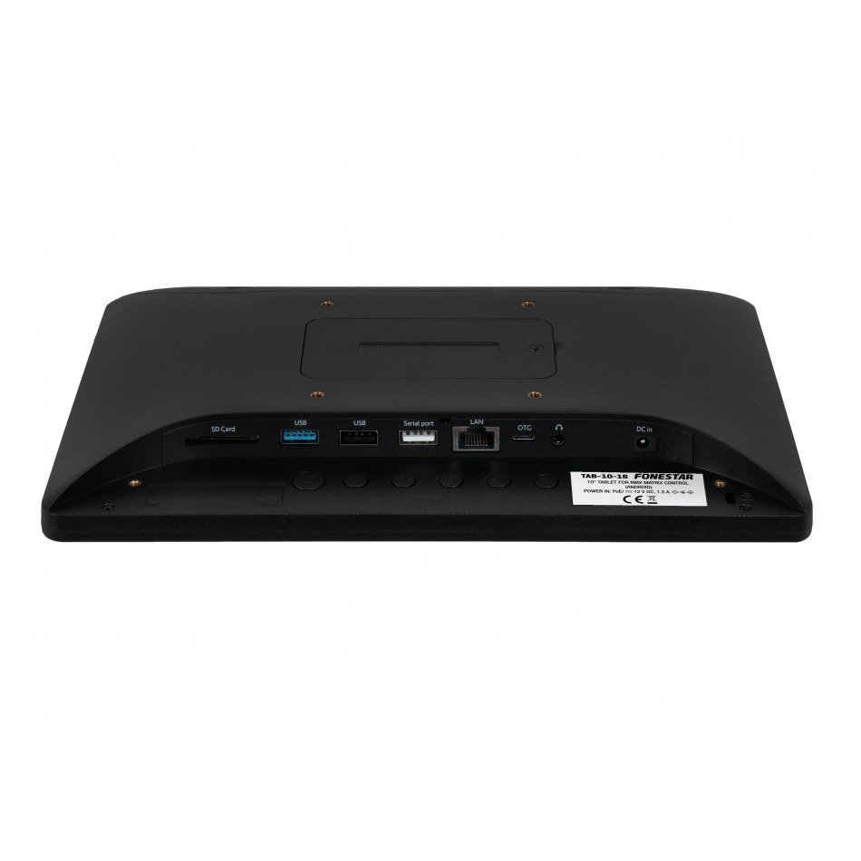 | CARACTERÍSTICAS | Pantalla táctil 10'' basada en tablet Android 2G + 16G. Para ejecutar App de interfaz de usuario de las matrices serie NMX. Programable y personalizable con el software de control para PC. Principales funciones son control de volumen, control de ganancia, Mute, llamada a escenas, comandos UDP, RS-232 o RS-485. Soporta múltiples pantallas táctiles en una instalación. Conexión a través de Ethernet RJ45 y alimentación POE. Compatible con soporte VESA 75 x 75. |