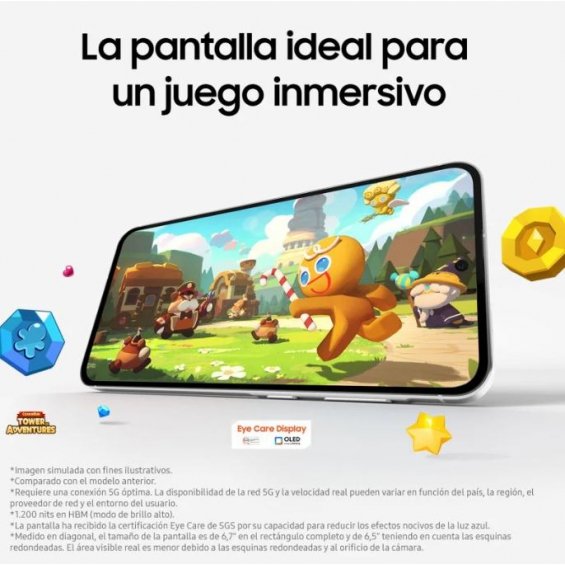 Este dispositivo está diseñado para durar, con certificación IP67 resistente al agua y al polvo, además de contar con 6 años de actualizaciones de seguridad y sistema operativo . Su impresionante pantalla Super AMOLED de 6,7” con Vision Booster ofrece colores vibrantes incluso bajo la luz del sol.