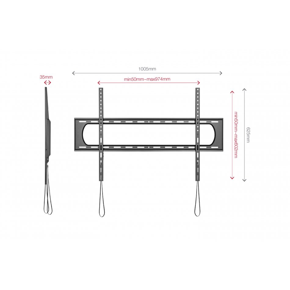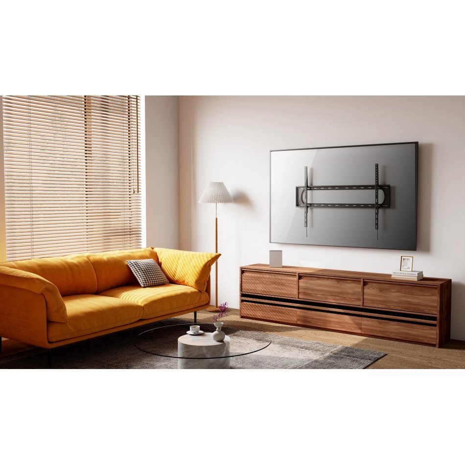 El FIX-096PR se destaca como una solución robusta y de fácil instalación para televisores de gran tamaño en cualquier hogar o espacio profesional. Su diseño extraplano asegura una distancia discreta de solo 3,5 cm respecto a la pared, optimizando el espacio sin comprometer la seguridad. Incluye todos los accesorios necesarios, desde tacos Fischer hasta tornillos de montaje, garantizando que cada detalle de instalación esté cubierto.