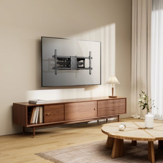 Este soporte está diseñado para quienes buscan un accesorio duradero y adaptable a las exigencias de visualización de pantallas de gran tamaño.